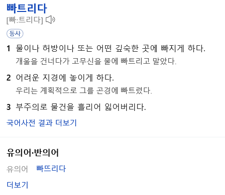 빠트리다의 유의어에 빠뜨리다가 있군요.